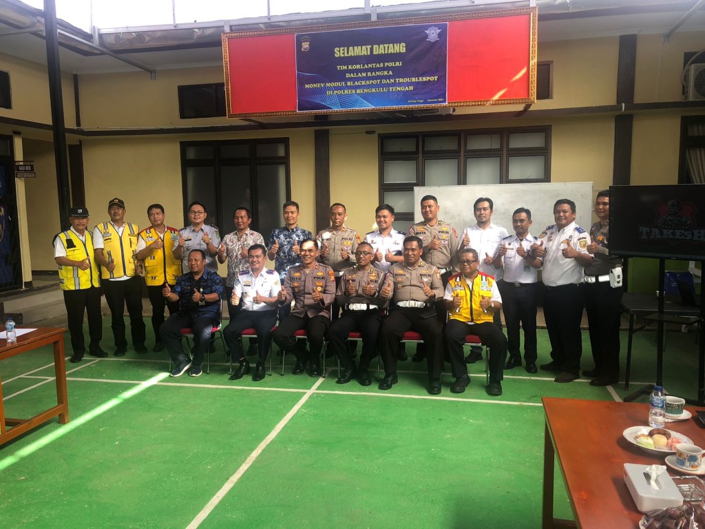 POLRES BENGKULU TENGAH, 23 FEBRUARI 2023 - Kepala Dinas Perhubungan Bengkulu Tengah Ariawan, S.Pi melalui Kepala Bidang LLAJ Febrianto, S.E., M.M menghadiri giat Monitoring dan Evaluasi terkait pendataan Blackspot dan Troublespot yang ada di wilayah hukum Kabupaten Bengkulu Tengah oleh Tim Korlantas Polri.