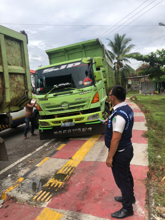 KARANG TINGGI, 30 AGUSTUS 2022 - Kepala Bidang LLAJ Dinas Perhubungan Bengkulu Tengah Febrianto, S.E.,M.M bersama anggota nya melakukan giat penertiban kendaraan bermuatan yang sedang mengantri BBM di SPBU Karang Tinggi .