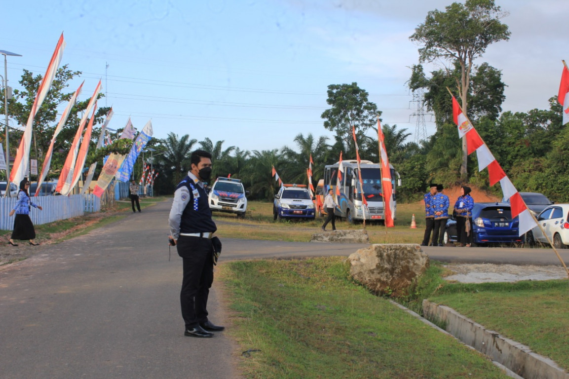 Kepala Bidang LLAJ Febrianto, S.E.,M.M. menugaskan staf nya untuk mengatur lalu lintas sekitar area Kantor Bupati guna terhindar dari kemacetan dan menumpuknya kendaraan yang berada di sekitar area Kantor Bupati .