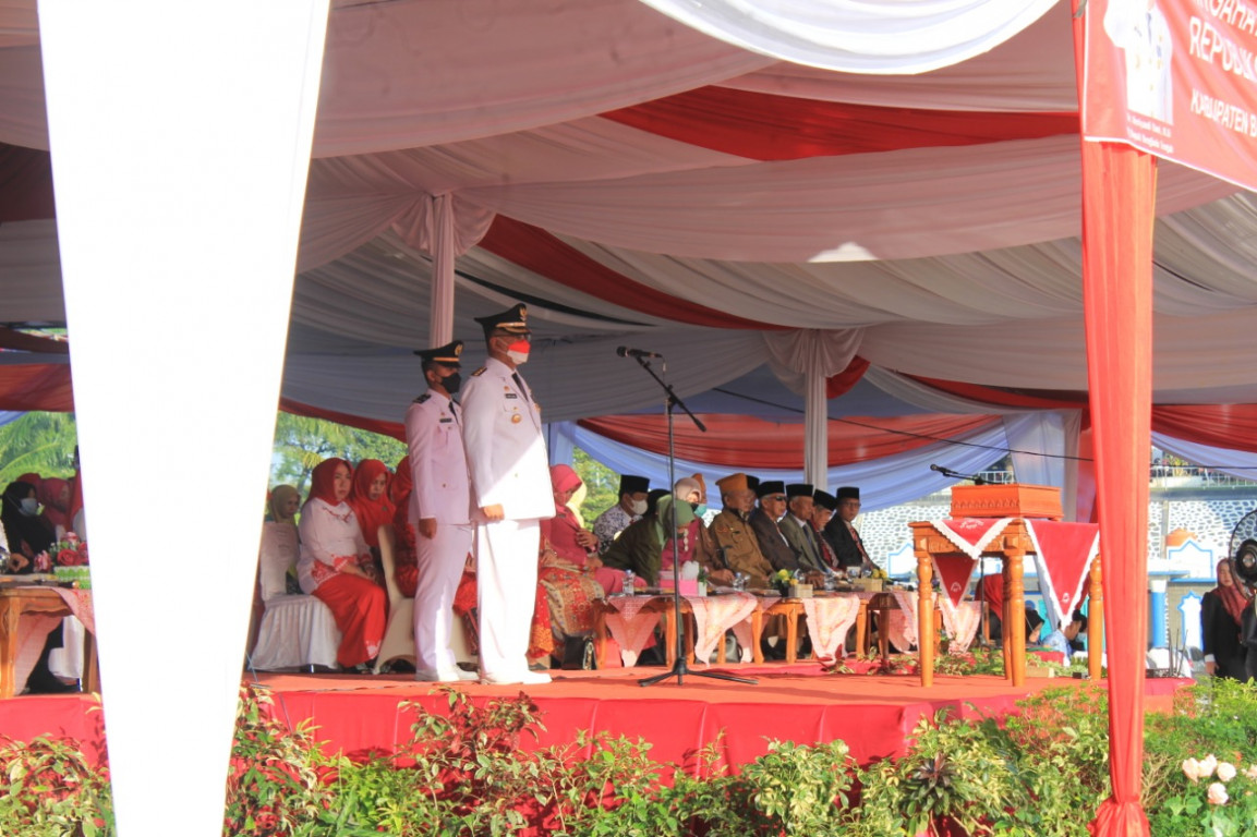 Upacara berlangsung aman dan khidmat dari Upacara Pengibaran Merah Putih hingga Upacara Penurunan Bendera di sore hari . (psd)